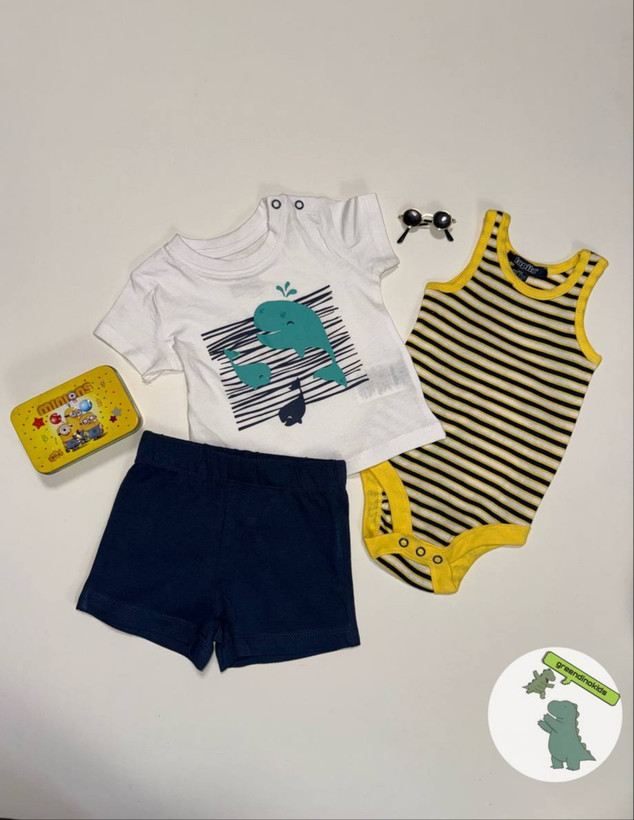 -ست سه تیکه لوپیلو آلمان شامل تیشرت،شلوارک،بادی