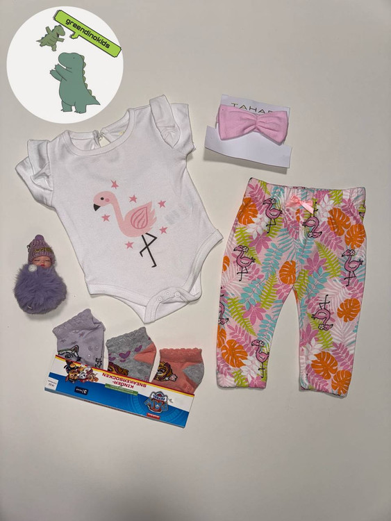 ست سه تیکه دخترانه نوزادی وارداتی فلامینگو کد 3